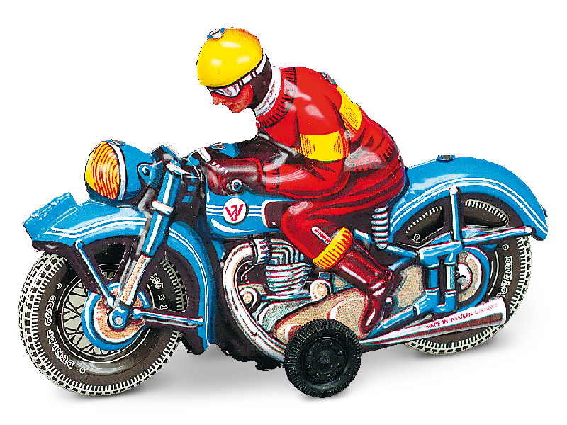 Die nostalgischen Blechspielwaren mit Federantrieb, Uhrwerks- oder Friktionsmotor brauchen gegenüber den Antriebsmodellen keine Dampfmaschine, um sich in Bewegung zu versetzten. Einfach Aufziehen, Hebel umlegen oder Anschwung geben und das Model startet durch.
